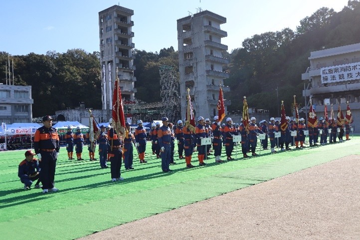 今年度は,ポンプ車の部を11月15日(土)に,多くの御来賓の臨席を賜り,消防関係者や応援の家族等の観覧者に見守られ,広島市安佐北区の広島県消防学校グラウンドにおいて開催しました。